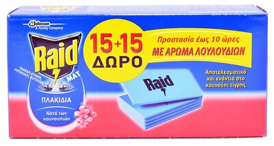 Raid mosquito repellent mats. 15 ft zone of protection 12 hours of mosquito free relief included. Raid multi insect killer 300ml. What is inside raid mats holder and 10 refills for mosquitos and tiger mosquitos. Controls a specific pest in a biocide product such as in an insecticide antimicrobial or repellent product.