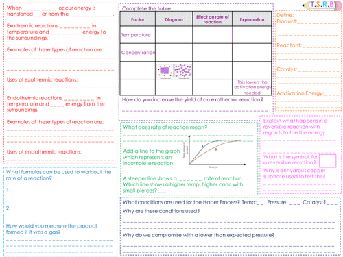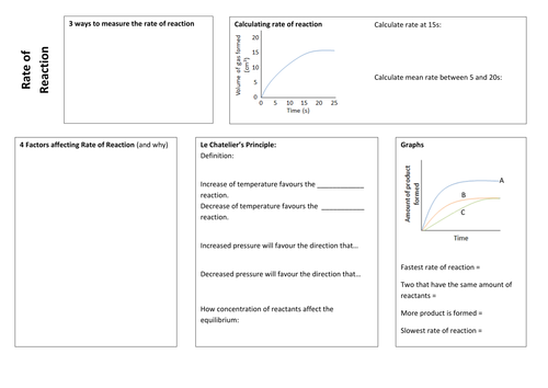 Rates of reaction revision mat tes. These are the perfect revision activity for students of all abilities. For students to fill in covering the key areas question sheet. 1 measuring rates of reaction. Lots of questions for students to answer about the topic designed specifically for the new aqa specification teaching from 2016 but may also be suitable for other exam boards.